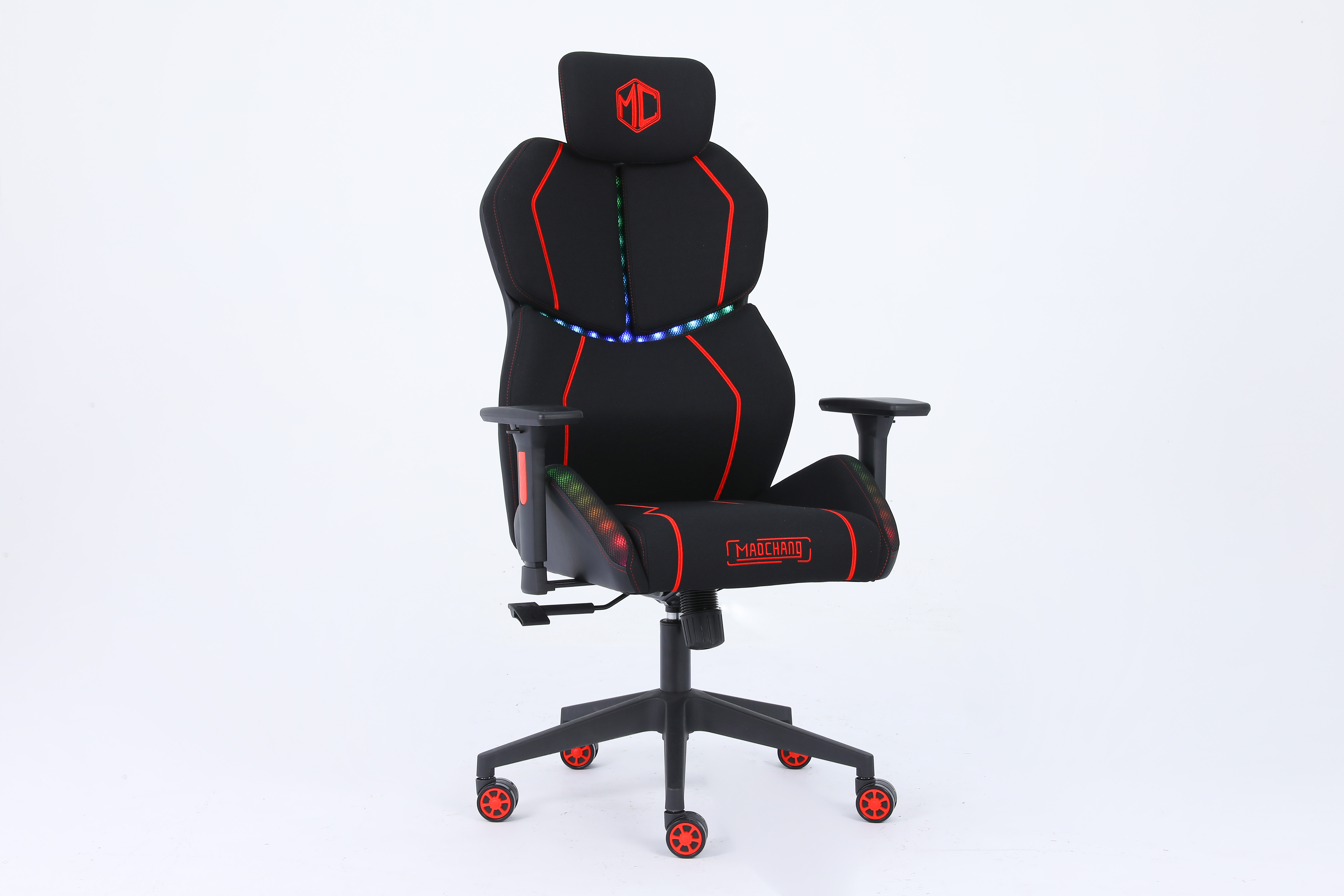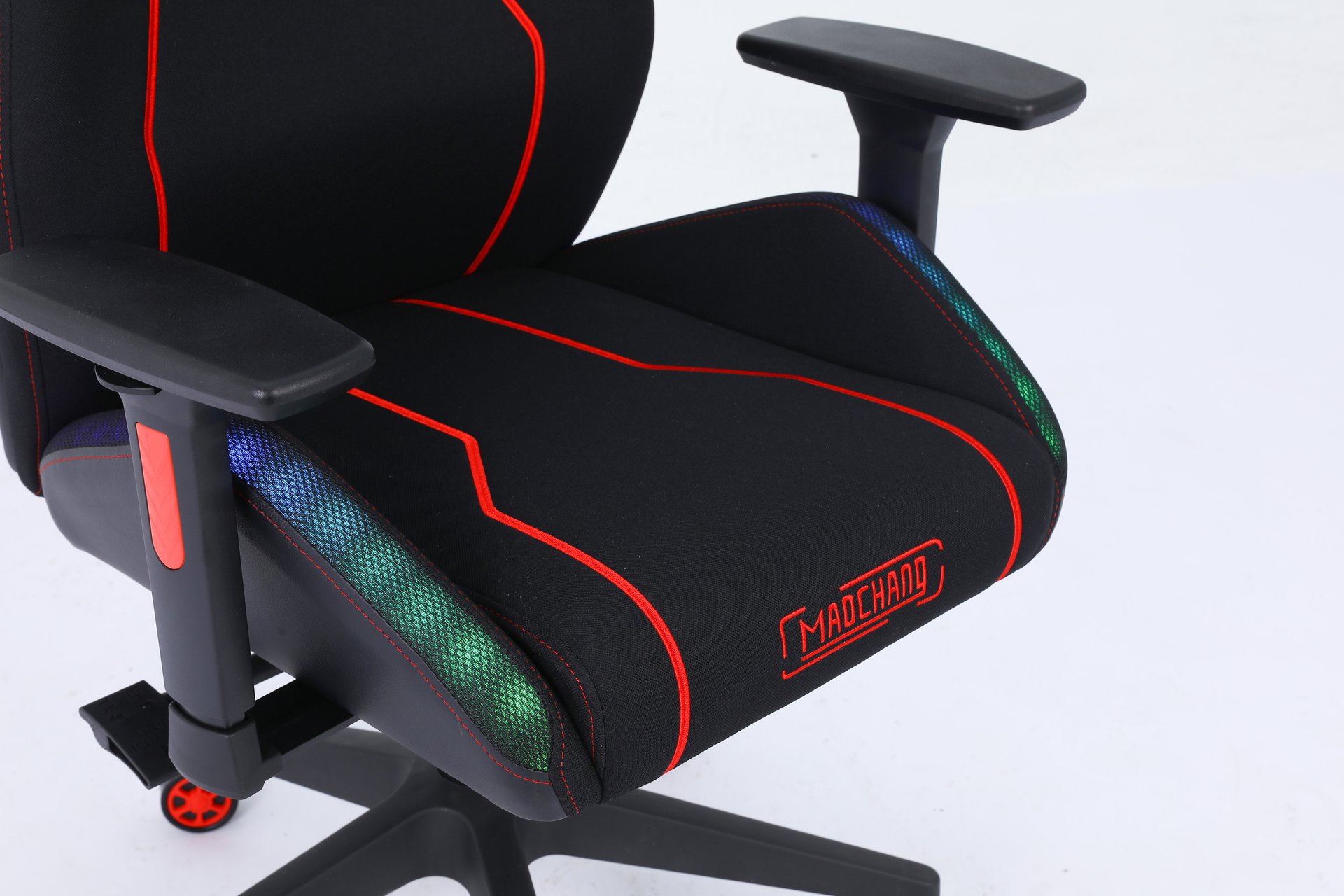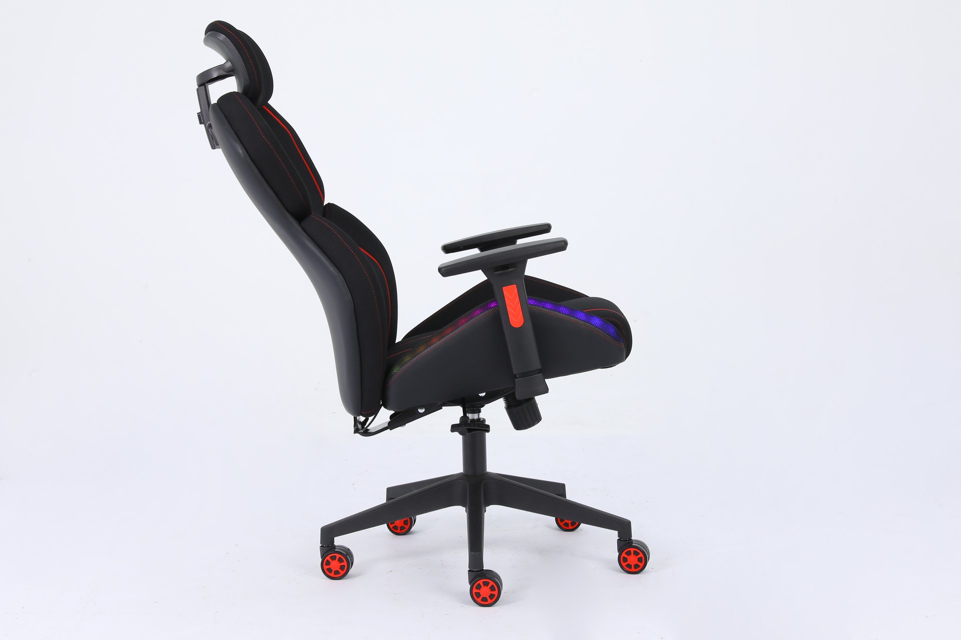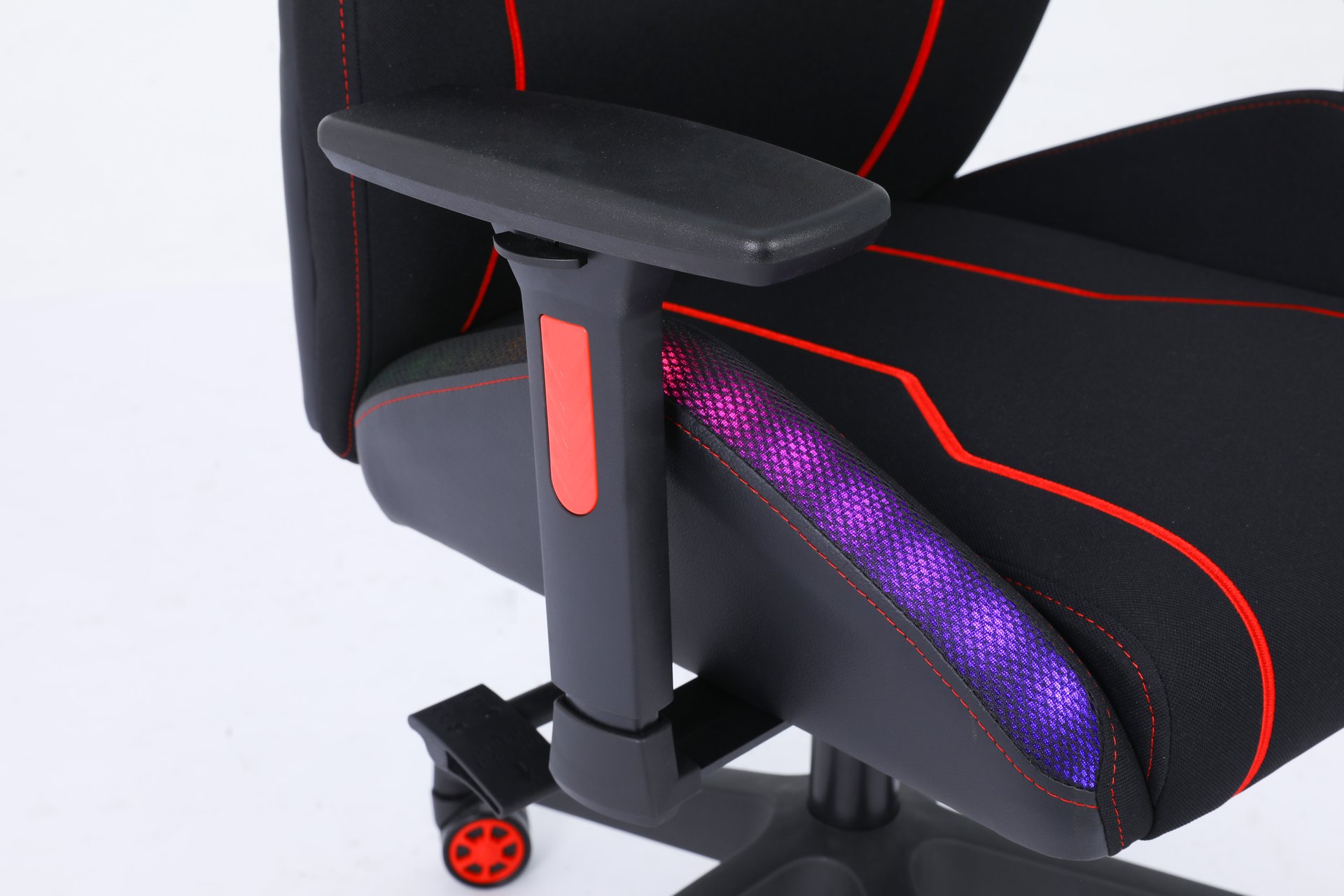 Unlike conventional illuminated gaming chairs, this model is constructed entirely with a wooden frame. In addition to the perimeter lighting, the LED strips also run down the middle of the backrest, giving the chair an even more stylish appearance. The layout of the light strips integrates perfectly with the segmented design of the backrest, and the flowing lines further enhance its overall sense of design.