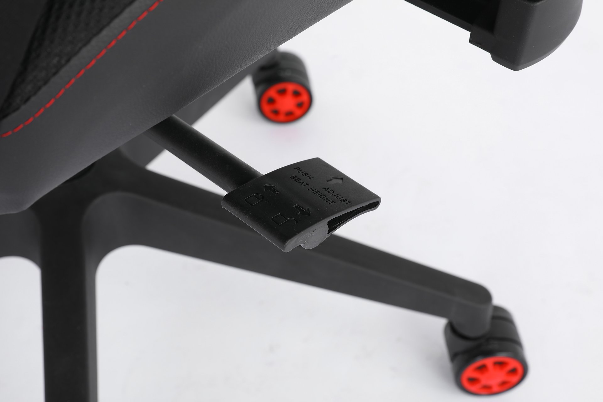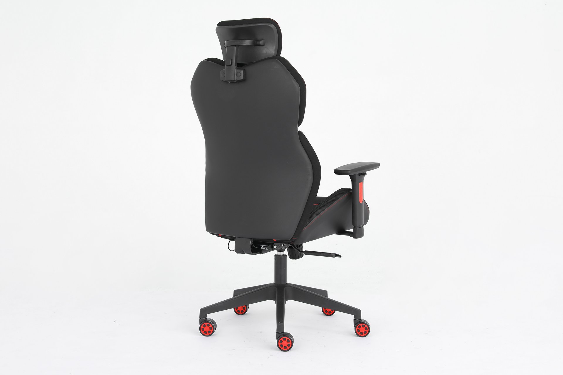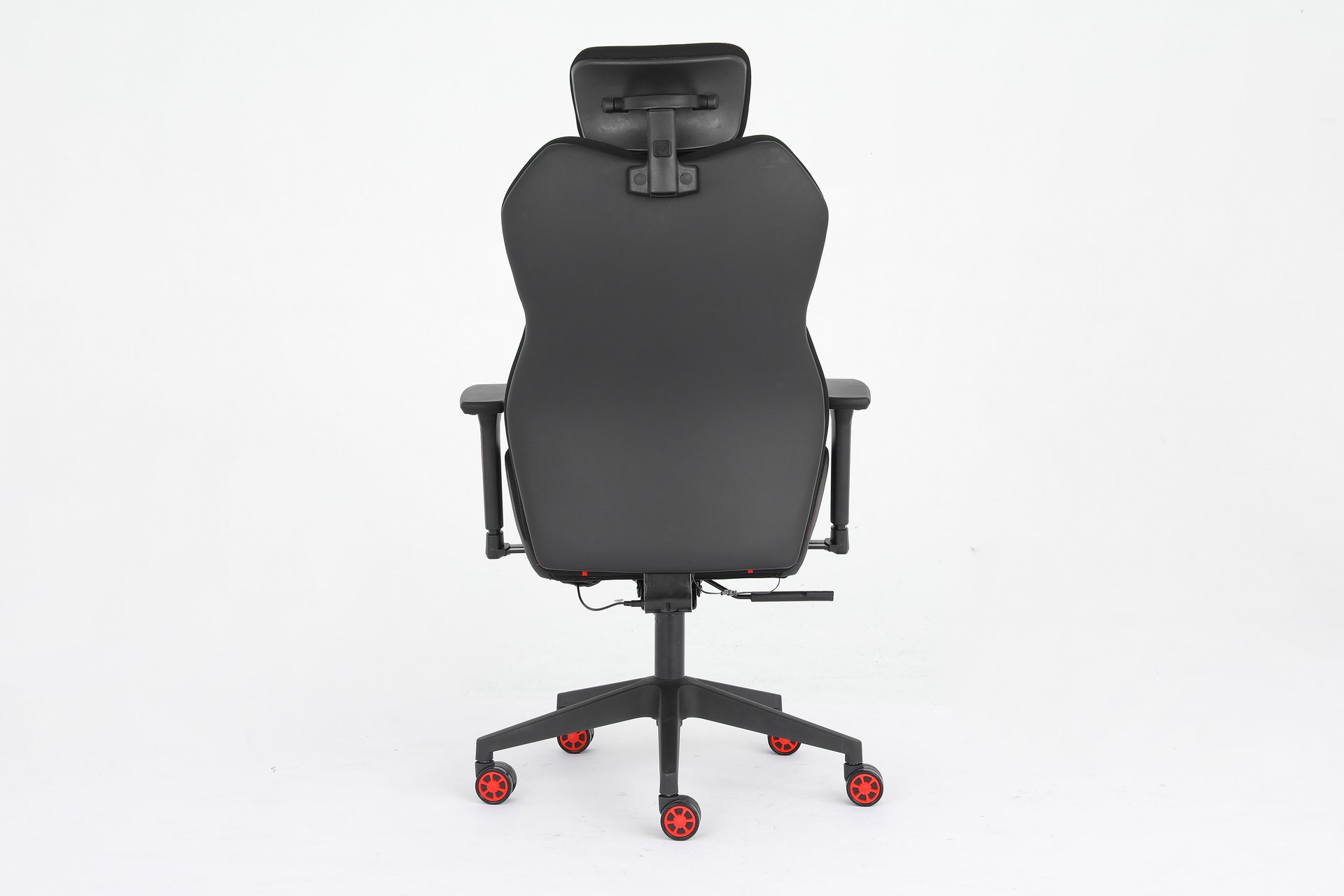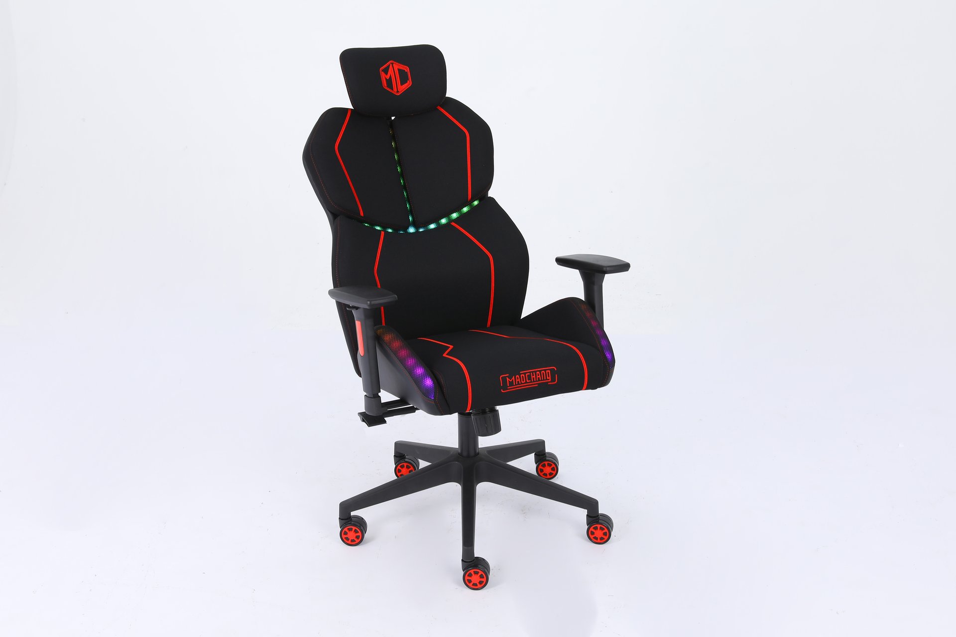 Unlike conventional illuminated gaming chairs, this model is constructed entirely with a wooden frame. In addition to the perimeter lighting, the LED strips also run down the middle of the backrest, giving the chair an even more stylish appearance. The layout of the light strips integrates perfectly with the segmented design of the backrest, and the flowing lines further enhance its overall sense of design.