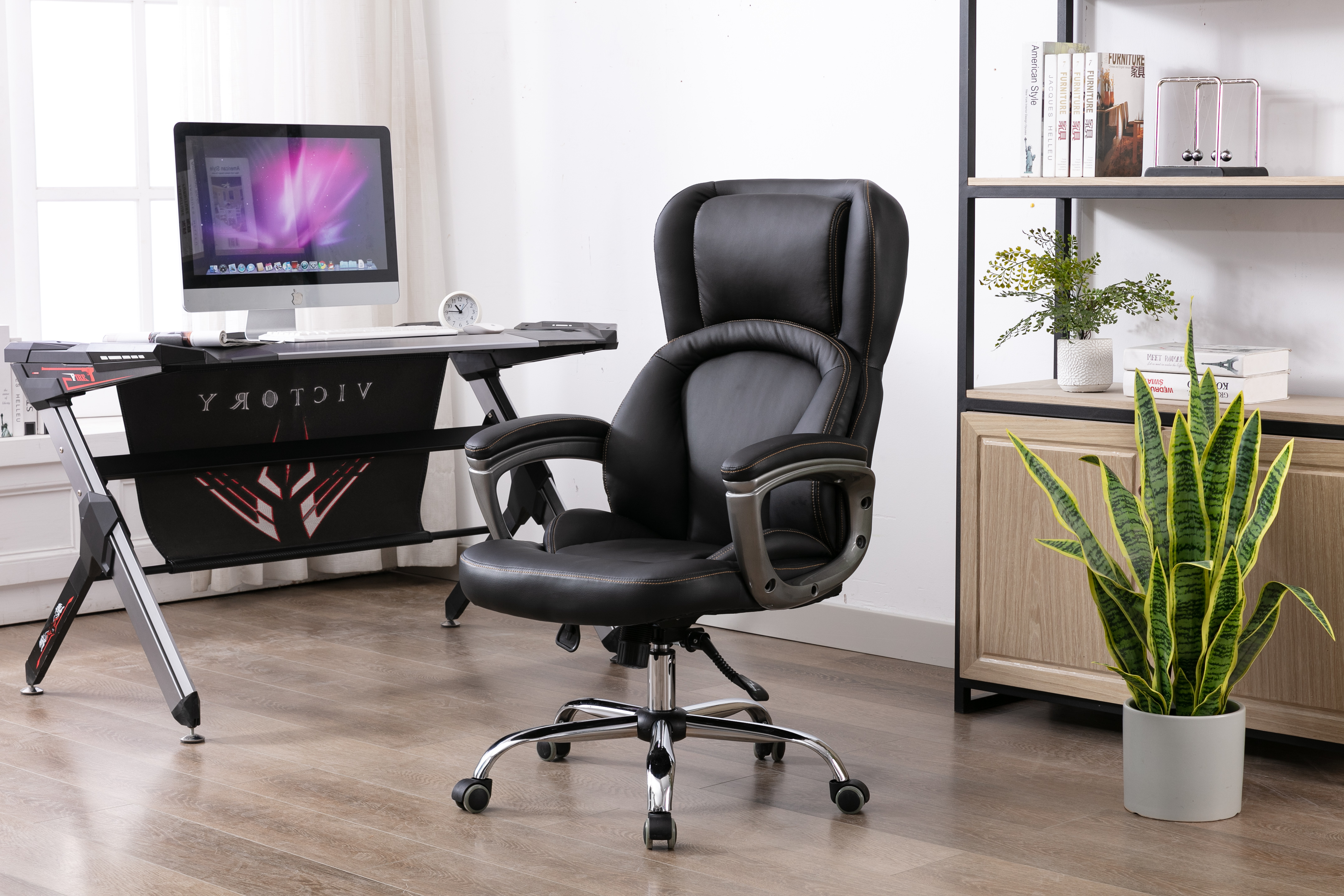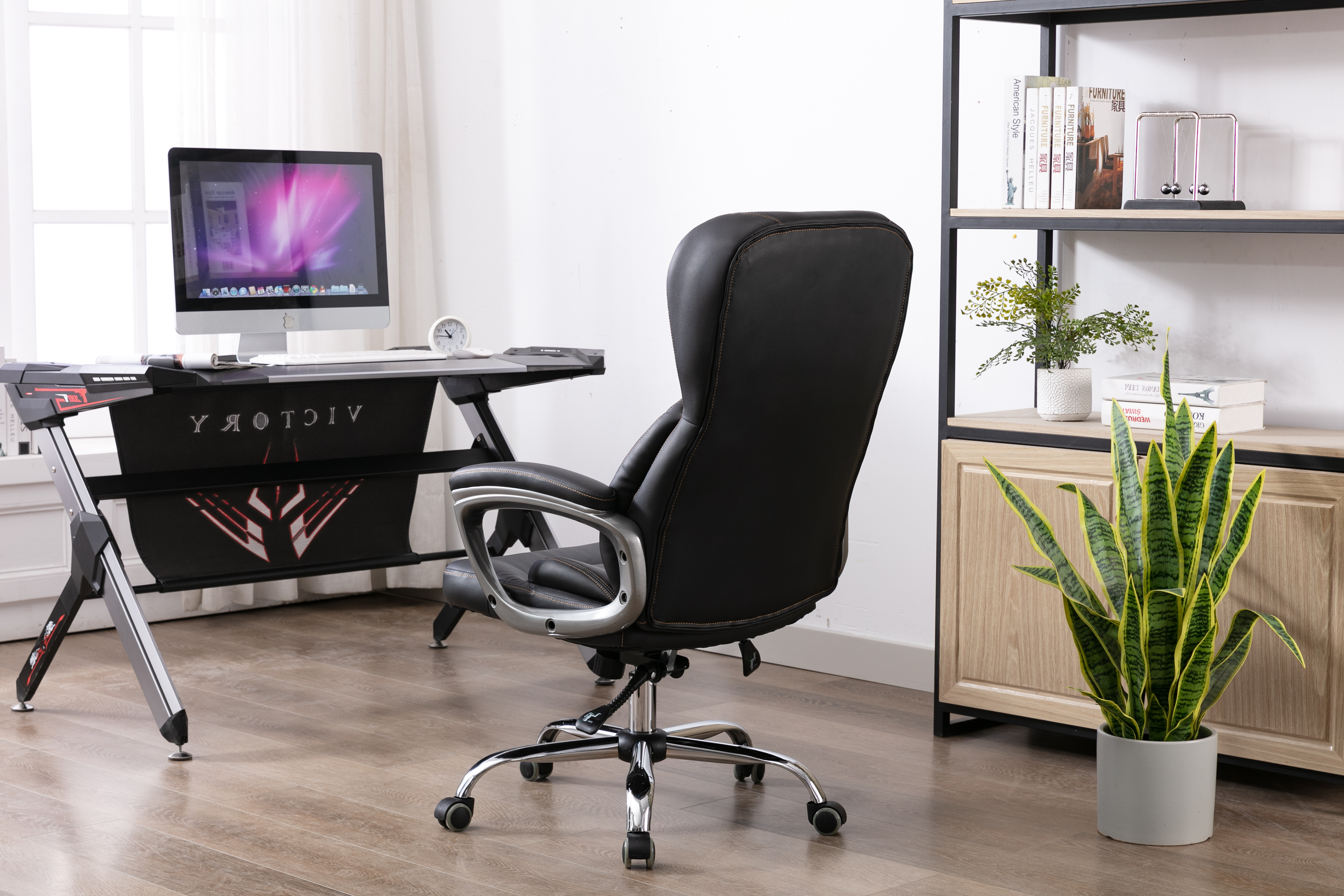 High back executive office chair, special shape design for back cushion to make sitting comfortable.