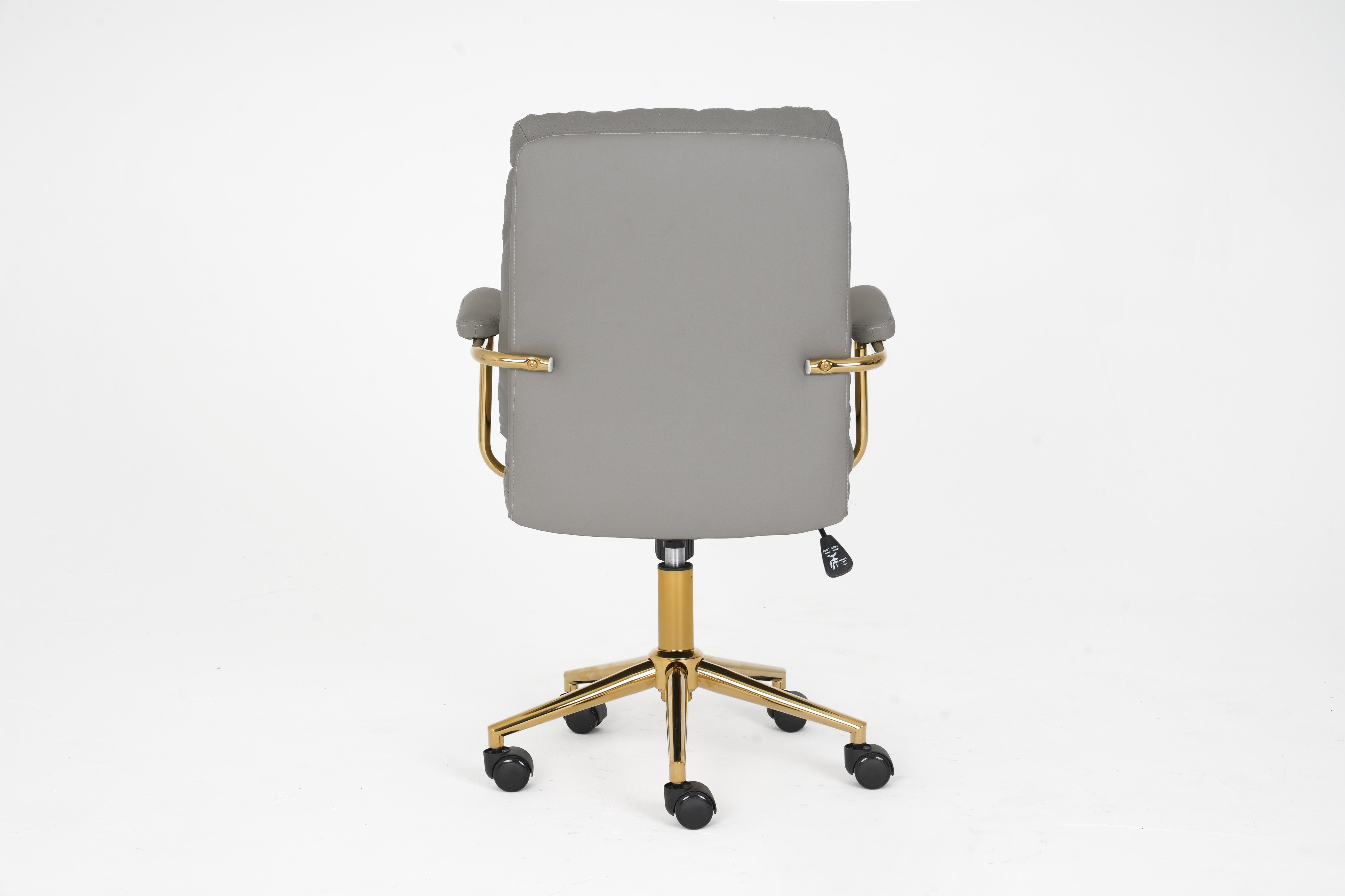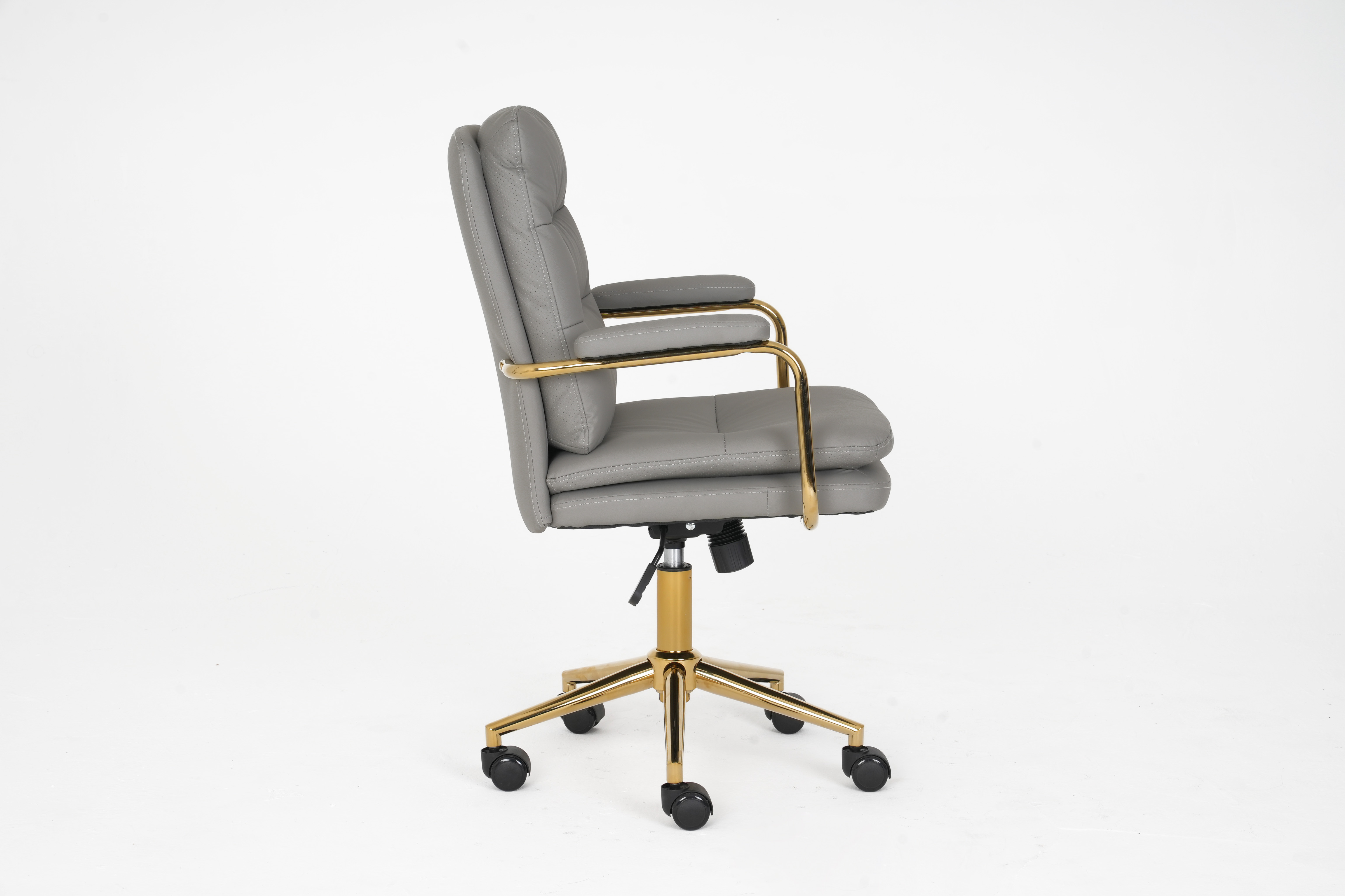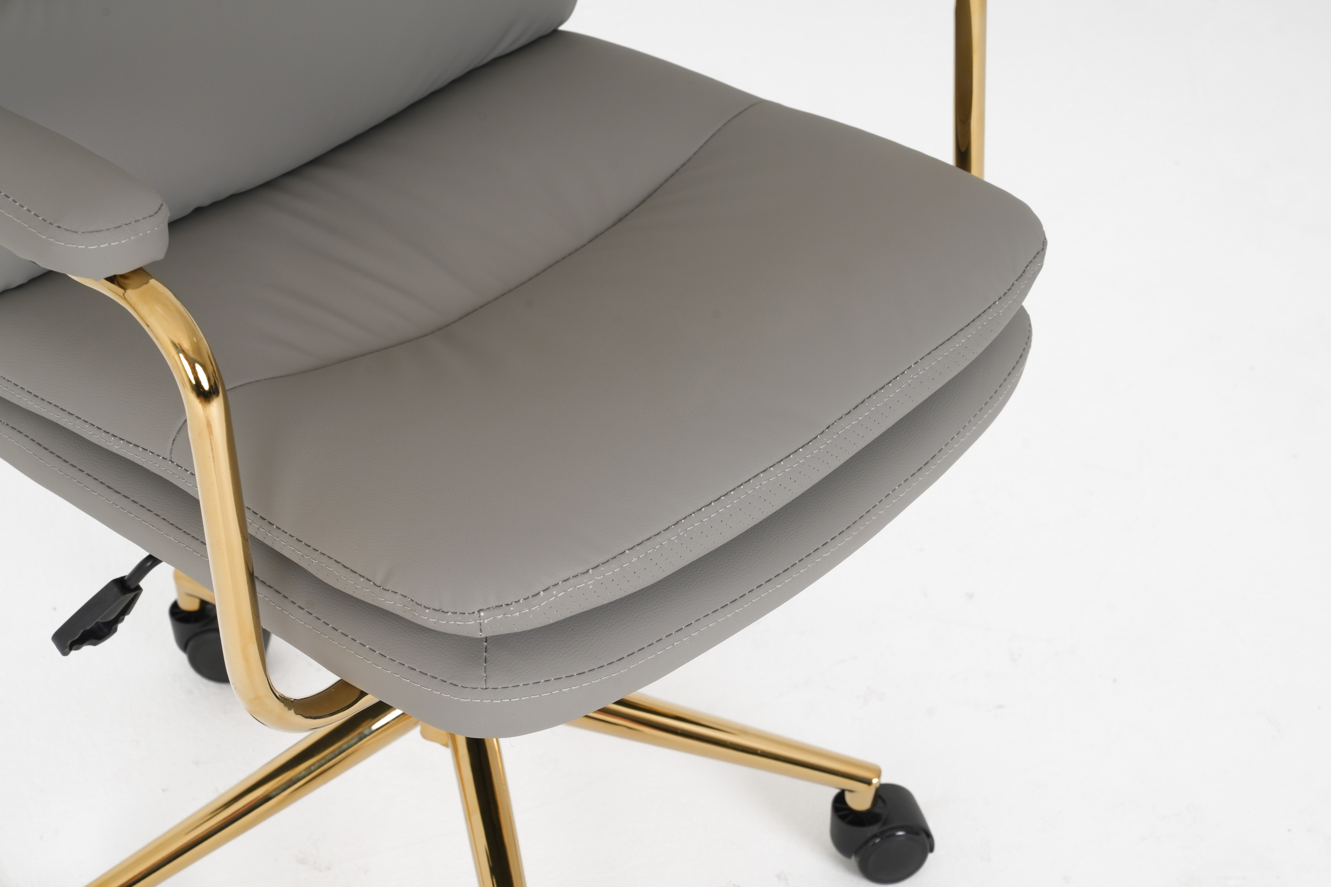The polished gold metal armrests and 5-star base boast sleek, elegant lines, creating a striking two-tone contrast that infuses any space with sophisticated, upscale charm.