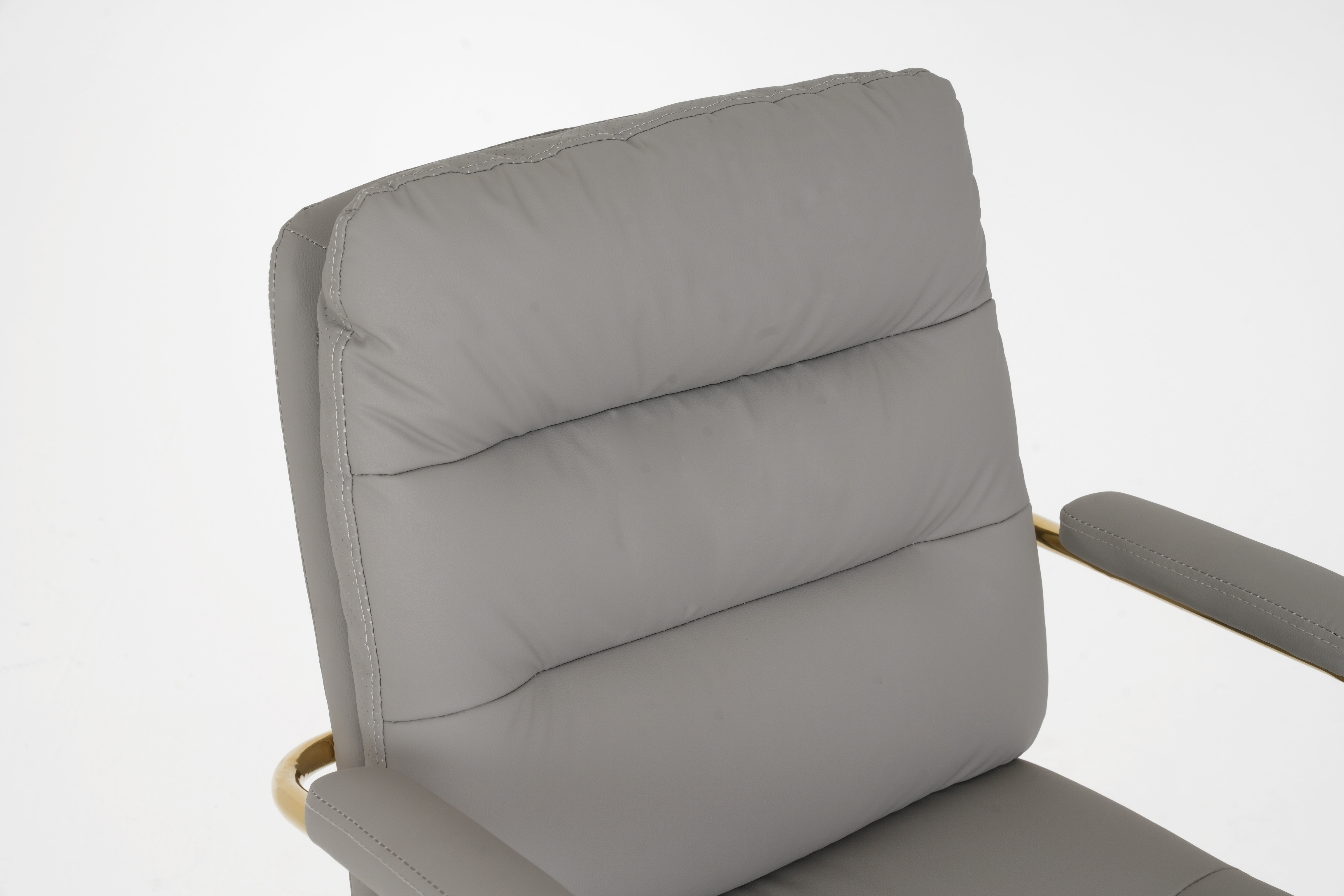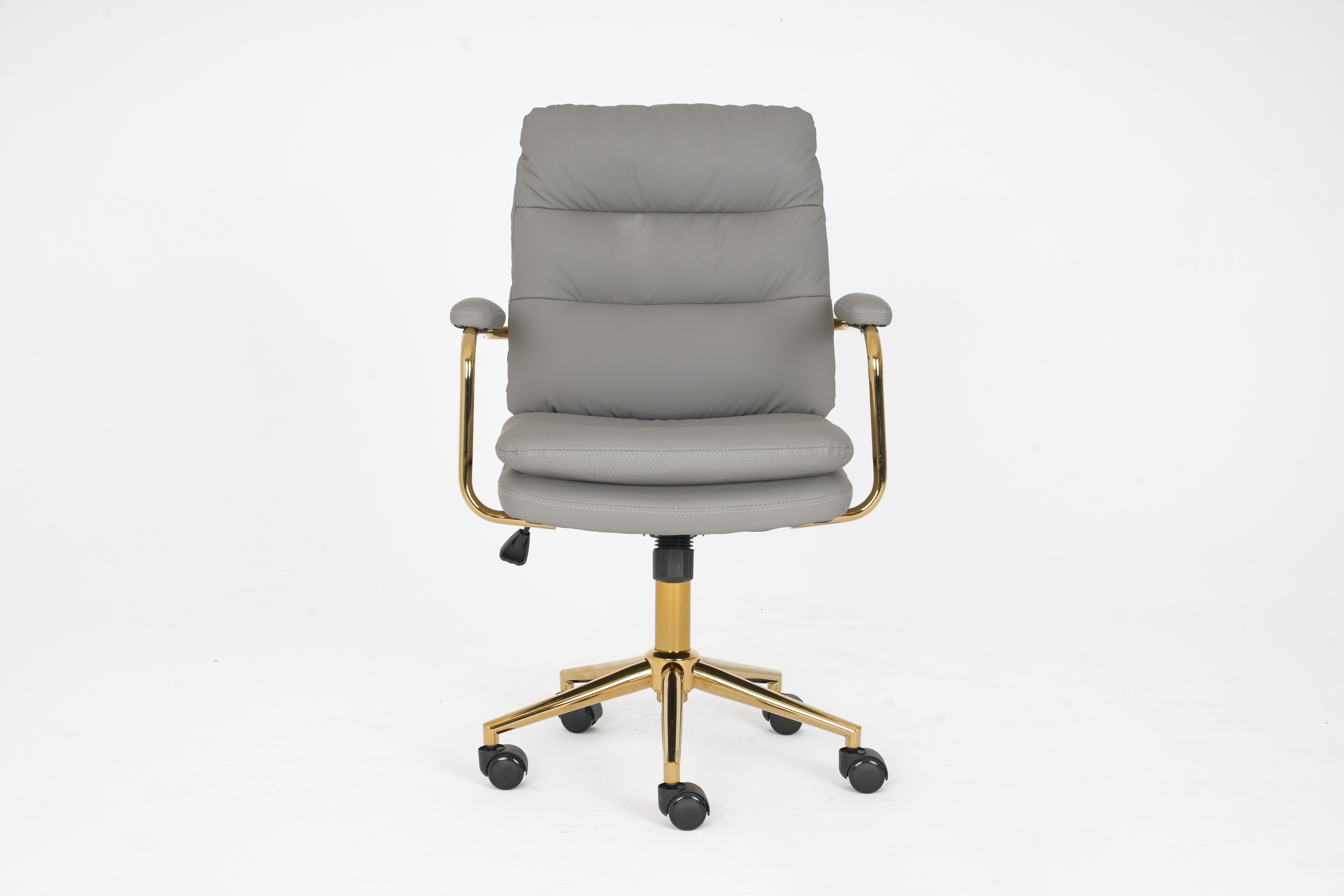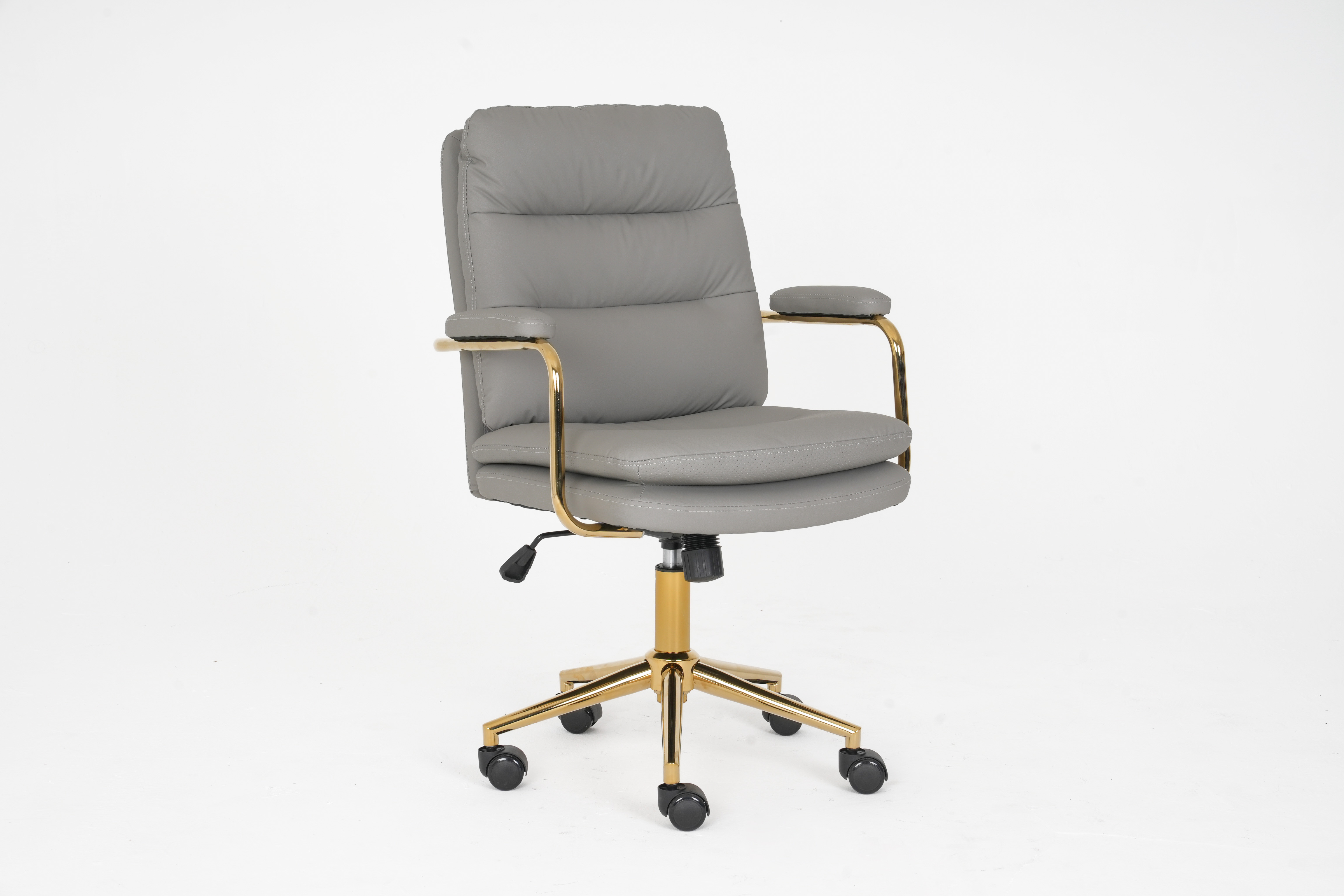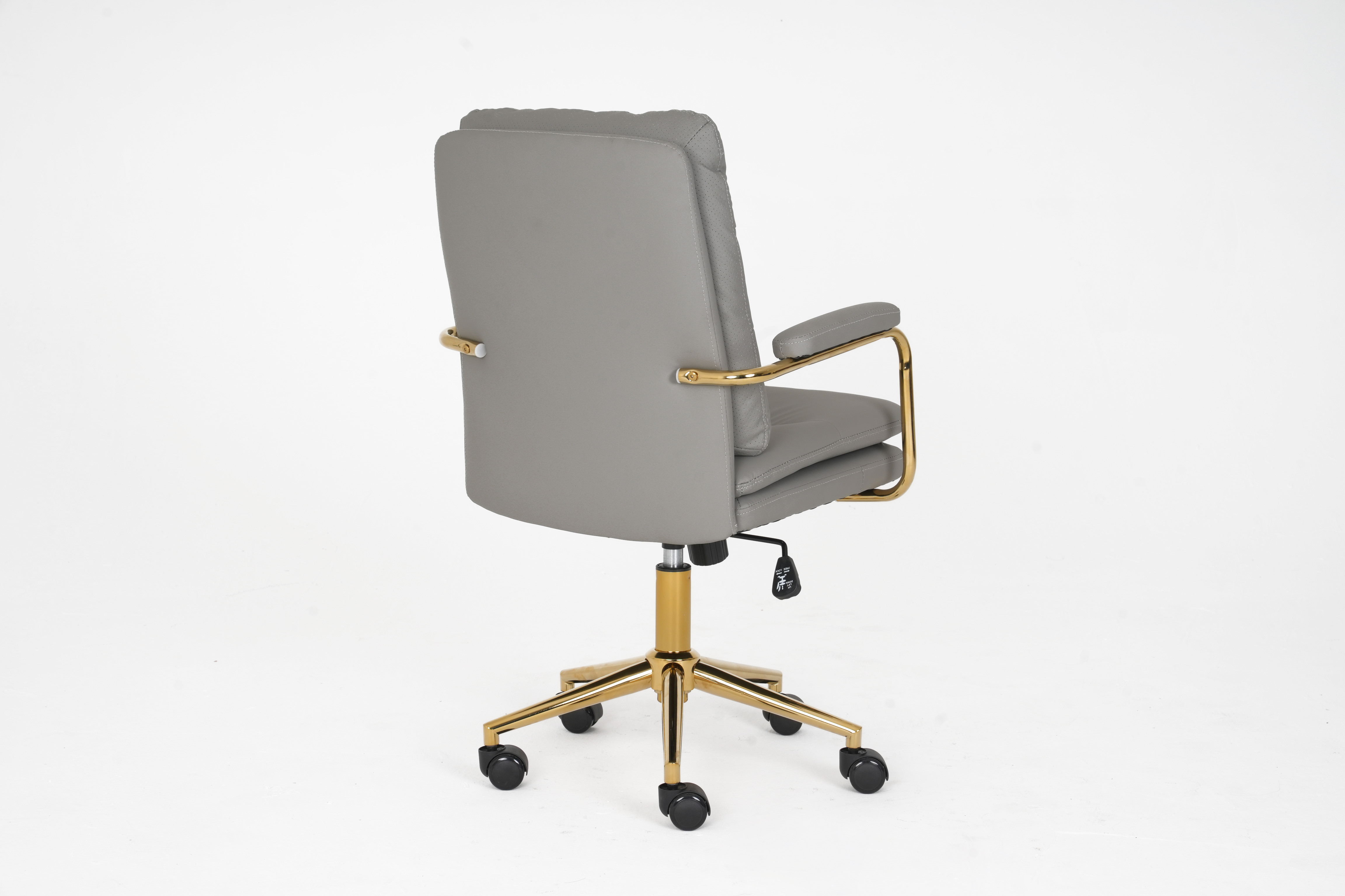 The polished gold metal armrests and 5-star base boast sleek, elegant lines, creating a striking two-tone contrast that infuses any space with sophisticated, upscale charm.